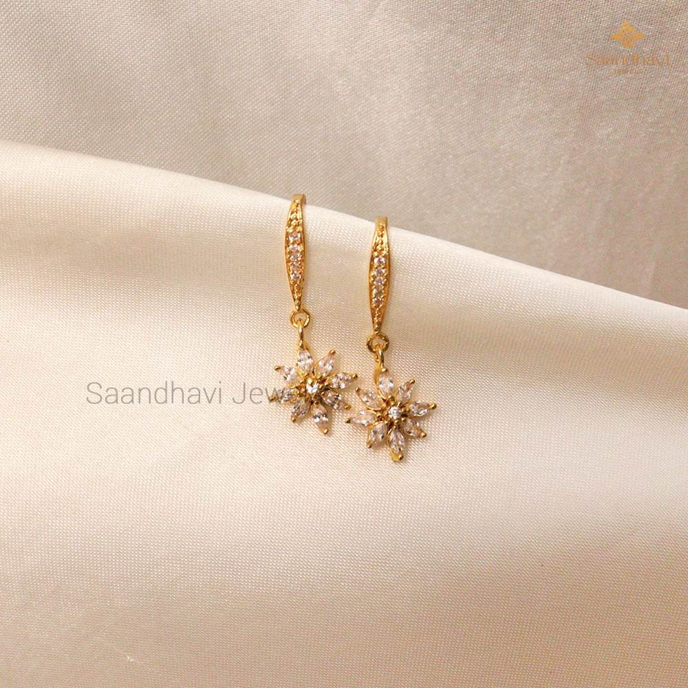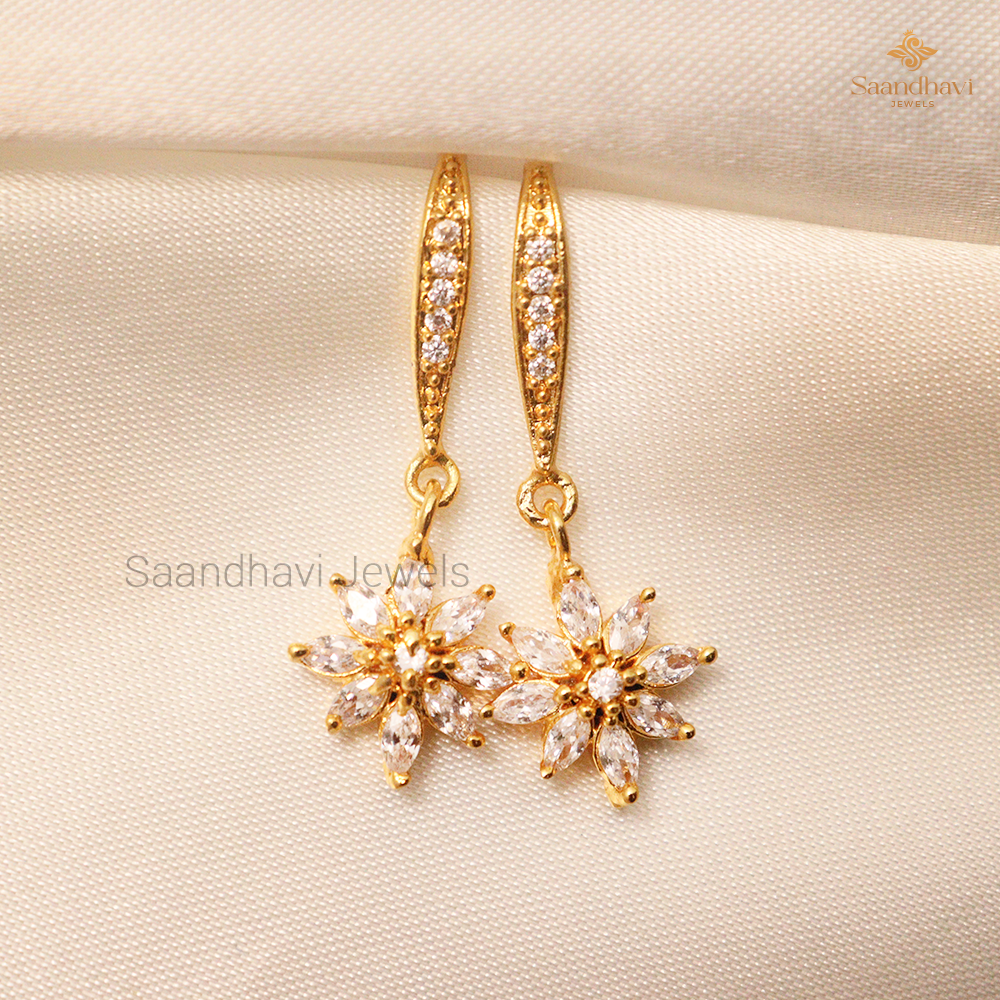 Elevate your elegance with these premium-quality gold-plated earrings, featuring sparkling floral designs adorned with dazzling white stones. Perfect for special occasions or adding a touch of sophistication to your everyday look.